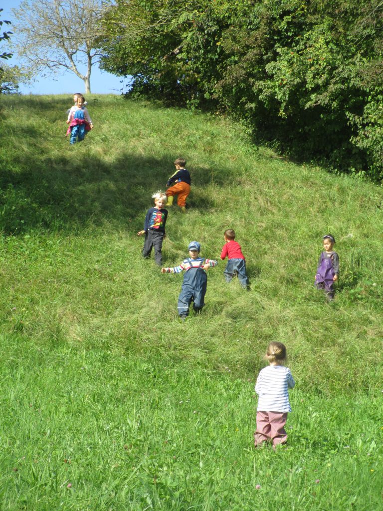 Im Rahmen des Themas “ Die Jahreszeitenuhr“ beobachten und dokumentieren die “ großen“ Schatzinselkinder den Apfelbaum im Kindergartenhof. Was verändert sich an dem Baum und warum? Im Anschluss daran ging es zum Graben springen. Ein Stopp beim Graben gehört einfach dazu! Nachdem die Pferde besucht wurden, stand Bewegungserziehung in der Natur auf dem Programm, denn einen steilen Berg erklimmen und dann schnell runterrennen oder wie ein Baumstamm runterkullern erfordert höchste Konzentration und motorisches Geschick! Alle freuen sich schon auf den nächsten Naturtag.